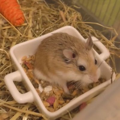 Oliver es un macho de hámster Roborowski de edad desconocida (aunque creemos que es joven) y carácter muy tímido. Aún está aprendiendo a confiar y adaptarse a un entorno seguro tras su paso por la perrera.