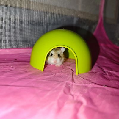 Hamlet es muy activo, aunque no lo parezca al principio, y necesita libertad para moverse y esconderse. Por tanto no sé dará para estar en una microjaula. La jaula deberá de ser amplia y espaciosa, a poder ser de varias plantas.